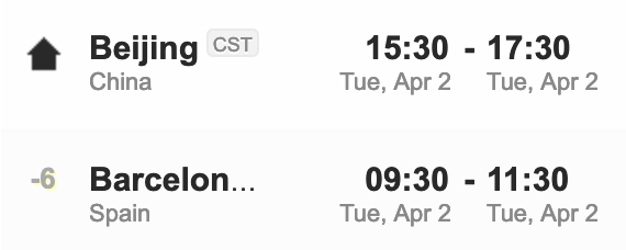 Los horarios están en horario de Beijing.